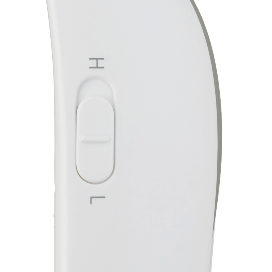 The heat panel curls your lashes in a radial, fanned-out shape from the roots. It features a two-step temperature switch, and you can create your desired lash look. Its lipstick-sized compact design fits easily into a small pouch, making it convenient to carry. The swing form automatically turns the power off when the arm is folded. Comes with a cleaning brush.