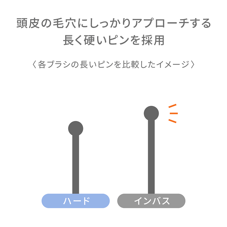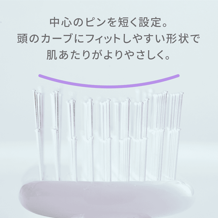 長いピンで髪の絡まりをやさしく解きほぐし、短いピンで頭皮に程よい刺激を与えます。